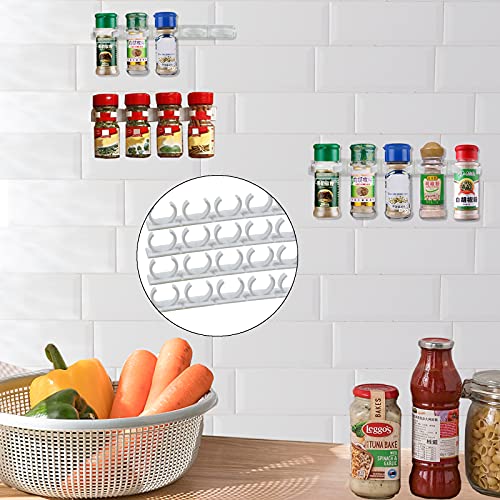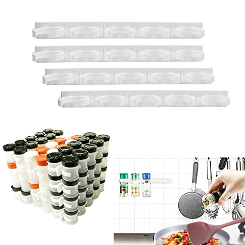 Maximize your kitchen space with this 4-pack wall-mounted spice jar storage solution, featuring adjustable clips to securely hold jars of various sizes. Keep your spices organized and easily accessible while maintaining a tidy look in your pantry or cabinet.
