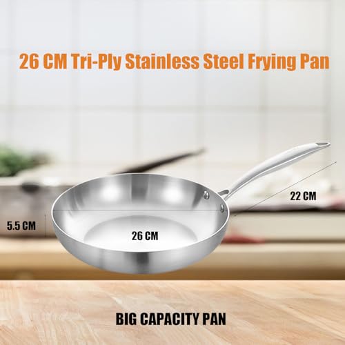 The LOLYKITCH 26 CM Stainless Steel Frying Pan is an impressive addition to any kitchen, designed for both amateur cooks and seasoned chefs. This tri-ply frying pan offers efficient heating, making it suitable for a variety of cooking methods, from sautéing to searing. Its durable stainless steel construction not only ensures longevity but also allows for the retention of natural flavors, enhancing your culinary creations.