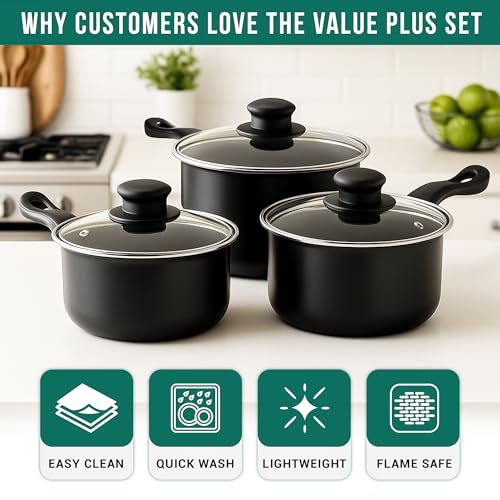 Measuring at a compact 24.41 x 38.1 x 16.51 cm and boasting a capacity of 3.5 litres, these pans are ideal for daily use while being lightweight at just 1.73 kg. Additionally, the dishwasher-safe feature adds convenience, making clean-up a breeze. Whether you’re in the heart of London or the countryside, this Pendeford saucepan set is designed to meet your cooking needs with style and efficiency.