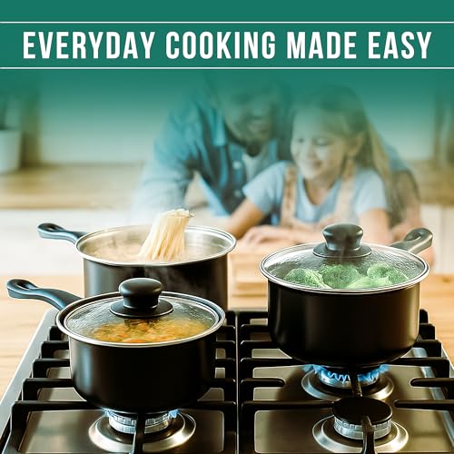 The Pendeford 3-Piece Saucepan Set with Lids is an essential addition to any kitchen, designed for both amateur cooks and seasoned chefs alike. Made from durable carbon steel, this versatile saucepan set promises efficient cooking with its non-stick surface, allowing for easy food release and hassle-free cleaning. The included glass lids not only provide a stylish touch but also enable you to monitor your cooking without losing heat. Each saucepan in this set is crafted to ensure even heat distribution, making it perfect for simmering sauces, boiling pasta, or steaming vegetables.