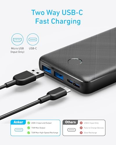 One of the standout features of the Anker 325 is its PowerIQ technology, which intelligently identifies your device and optimizes the charging speed, ensuring your iPhone or Samsung Galaxy charges quickly and safely. The inclusion of both Micro USB and USB Type C connectors adds versatility, allowing it to charge a wide range of devices without the need for multiple cables.