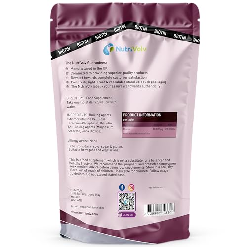 If you’re on the hunt for a reliable supplement to enhance your hair, skin, and nails, NutriVolv’s High Potency Biotin Hair Growth Tablets might be your go-to solution. With a potent dose of 10,000mcg per tablet, these biotin supplements are designed to support vibrant and healthy hair growth for both men and women. The one-year supply, containing 365 tablets, ensures that you have a long-lasting source of beauty and vitality support.