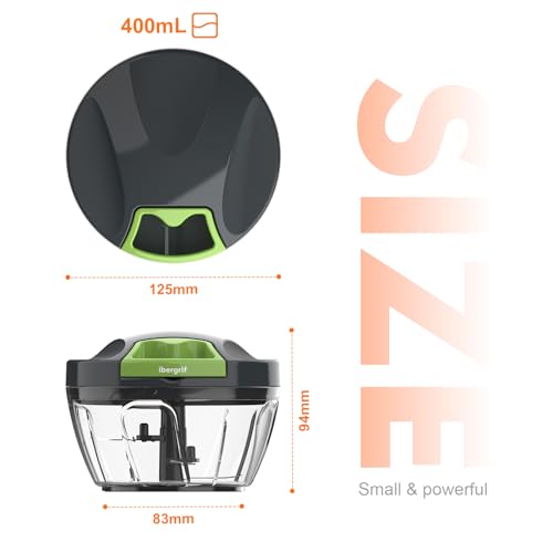 Constructed from food-grade PP and 420J2 stainless steel, the Ibergrif M501 ensures durability and safety in food preparation. The generous 400 ml capacity is perfect for small to medium-sized chopping tasks, while the manual operation means no batteries are required. This eco-friendly design is complemented by a non-slip base, providing stability during use and ensuring safe operation. Cleanup is a breeze, as the chopper is dishwasher safe, making it an ideal choice for the modern kitchen.