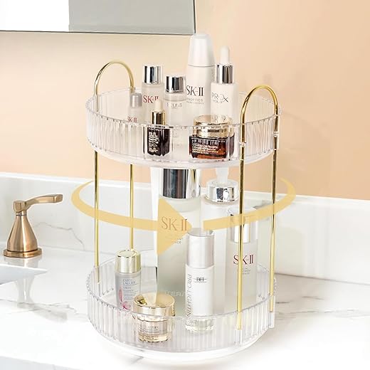 Large Rotating Makeup Organizer for Vanity & Bathroom Storage