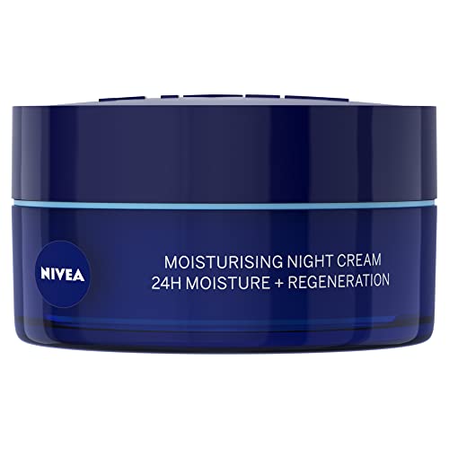 NIVEA 24 Hour Moisturising Night Cream is a highly effective overnight solution designed to provide intense hydration for your skin. Formulated with Pro Vitamin B5 and Vitamin E, this cream enhances skin regeneration while you sleep, ensuring you wake up with nourished and refreshed skin. This product, manufactured by Beiersdorf in Poland, comes in a convenient 50 ml container, making it an ideal choice for those seeking a reliable night cream that fits easily into their skincare routine.