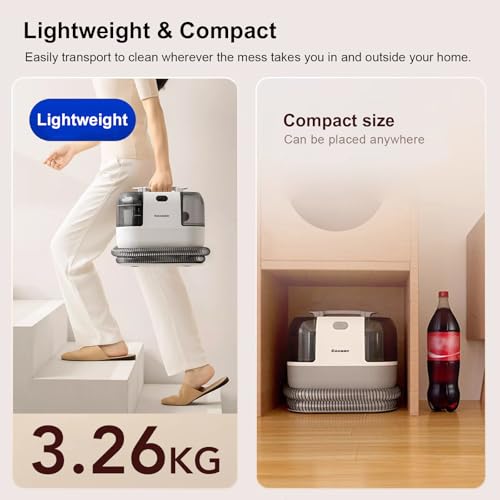 The 5.25ft hose and 16.4ft cord provide ample reach, making it convenient for cleaning larger areas. Its lightweight design, at just 4.14 kg, makes it easy to maneuver around your home or vehicle. The COCEAN cleaner not only efficiently removes stains but also promotes a healthier living environment by ensuring quick drying.