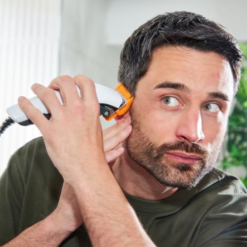 The Remington Colour Cut Hair Clippers Kit is an outstanding choice for anyone looking to achieve professional-quality haircuts from the comfort of their home. Designed with user-friendliness in mind, this kit features self-sharpening stainless steel blades that ensure precision and longevity in every cut. The standout feature is the 9 color-coded combs that range from 1.5mm to 25mm, making it easy to select the perfect length for different hairstyles. The adjustable taper lever allows for fine-tuning between 0.5mm and 2mm, providing even more versatility. Lightweight at just 0.81 kg, these clippers are comfortable to handle, suitable for both beginners and experienced users.