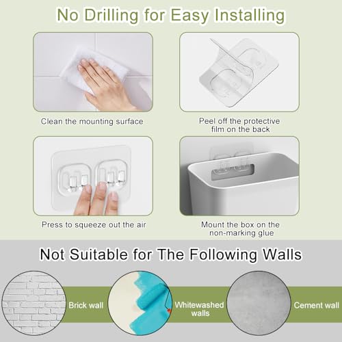 Installation is a breeze, thanks to the adhesive backing that allows for quick and easy mounting on any wall without the need for tools. Measuring 14 x 9 x 15 cm, these boxes are compact yet spacious enough to store essentials like stationary, cosmetics, or kitchen utensils. The lightweight design (330 g) ensures that they can be placed practically anywhere, adding to their versatility.