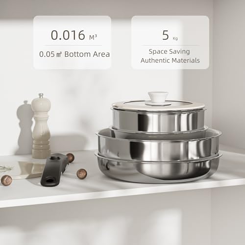 One of the standout features is the stackable design, which saves valuable kitchen space, perfect for those with limited storage. The removable handles enhance its aesthetic appeal, allowing for a sleek presentation when serving dishes. Weighing in at 5.53 kg, the set is sturdy yet manageable, making it easy to handle while cooking.