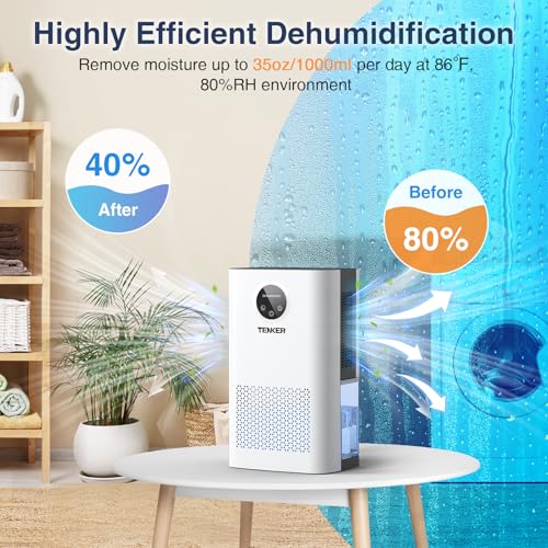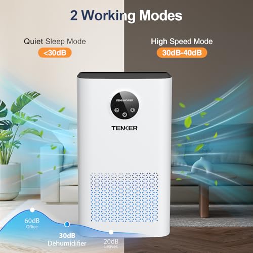 Looking for an effective solution to combat excess moisture in your home? The TENKER Compact Quiet Dehumidifier is an excellent choice that combines functionality and aesthetics. This dehumidifier promises to create a comfortable environment by efficiently removing humidity from the air, making it perfect for bedrooms, bathrooms, and living spaces. Its compact design, measuring 20 x 14 x 35 cm, allows it to fit seamlessly into any corner of your home, while the stylish white finish complements modern decor.