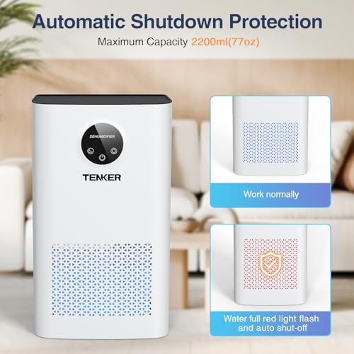 One of the standout features of the TENKER dehumidifier is its quiet operation, making it a great companion for nighttime use. Additionally, the colorful LED lights add a touch of ambiance, making it visually appealing. With a capacity of 2.2 litres and an automatic shutoff feature, you can ensure that the unit operates safely and efficiently without the need for constant monitoring. Weighing in at just 2.64 kg, it’s also portable, allowing you to move it between rooms with ease.