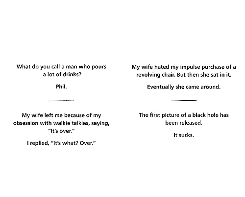 - Easy-to-read format allows for spontaneous joke sharing