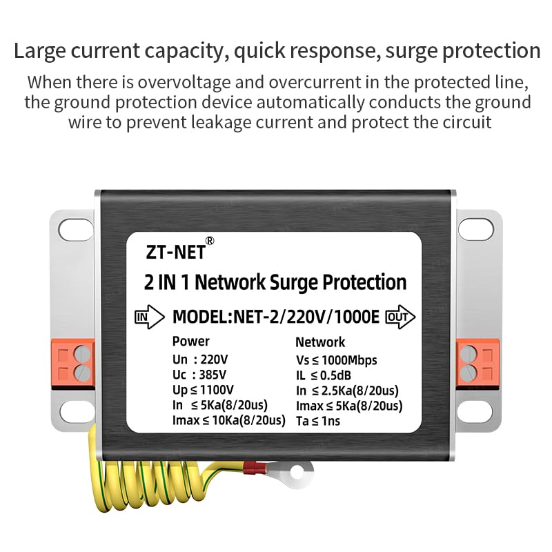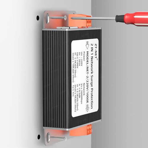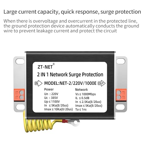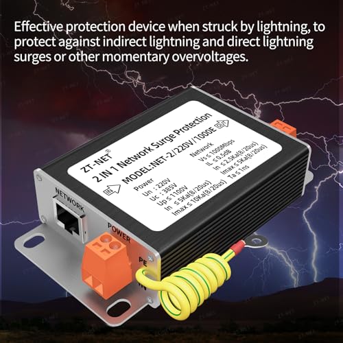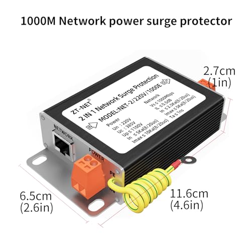 The ZT-NET 2-in-1 Ethernet Surge Protector is an essential device for anyone looking to safeguard their network systems from unexpected surges and lightning strikes. With a robust aluminum construction, this surge protector not only promises durability but also ensures optimal performance in sensitive monitoring systems. Measuring 11.6 cm in length and 2.7 cm in width, it is compact and can be seamlessly integrated into your existing network setup without taking up much space. Weighing just 160 grams, it is lightweight yet highly effective.